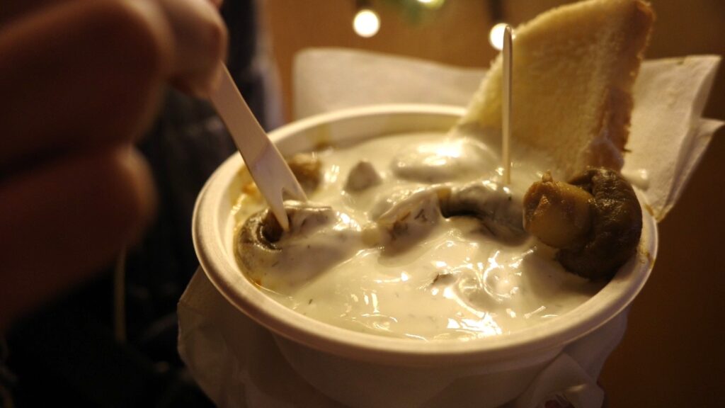 個人的にはここで食べたマッシュルームの煮込みと、ザワークラフトのケールバージョンがこの旅行のマーケットフードの中で一番美味しかったです!!