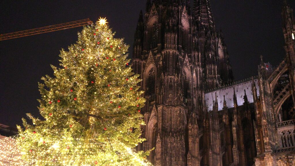 ケルン大聖堂を背景に大きなツリーが幻想的でヨーロッパっぽい!