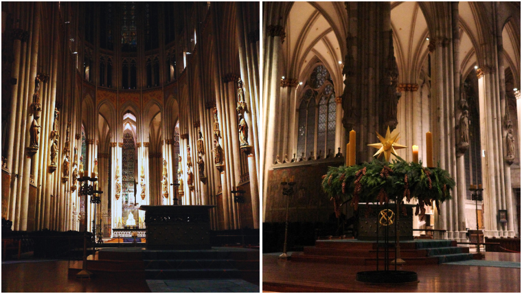 中はとっても壮大で大きなステンドグラスがあったので、日中にくればよかったと後悔しました💦日中だったら上にも上がれて、クリスマスマーケットを上から見たり、街並みを見渡すことも可能なので、ケルン大聖堂は日中に来るのがおすすめです!