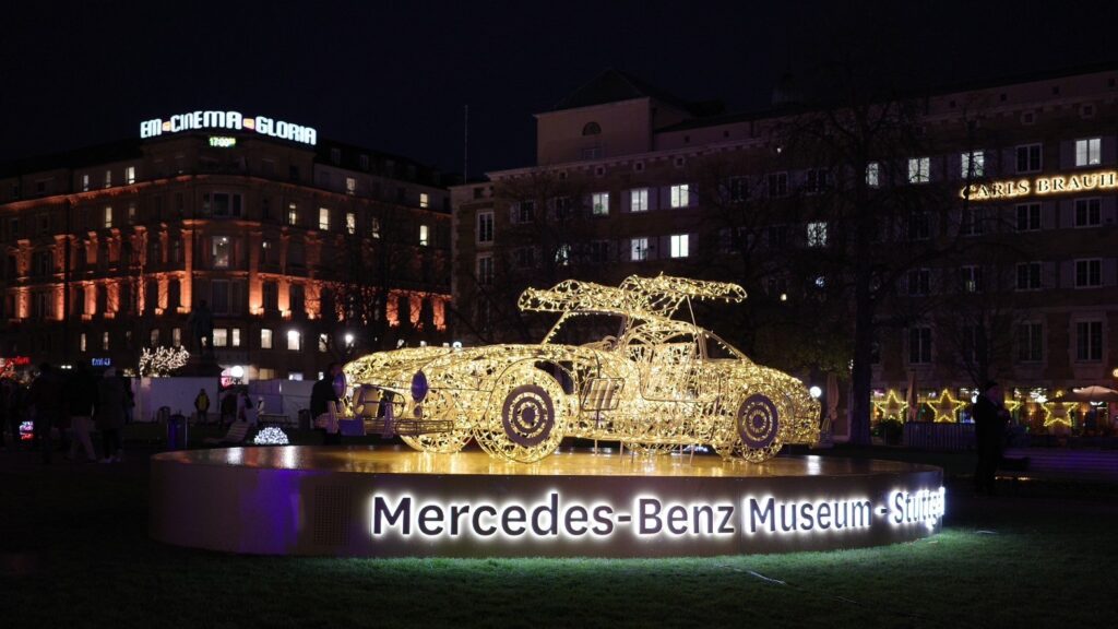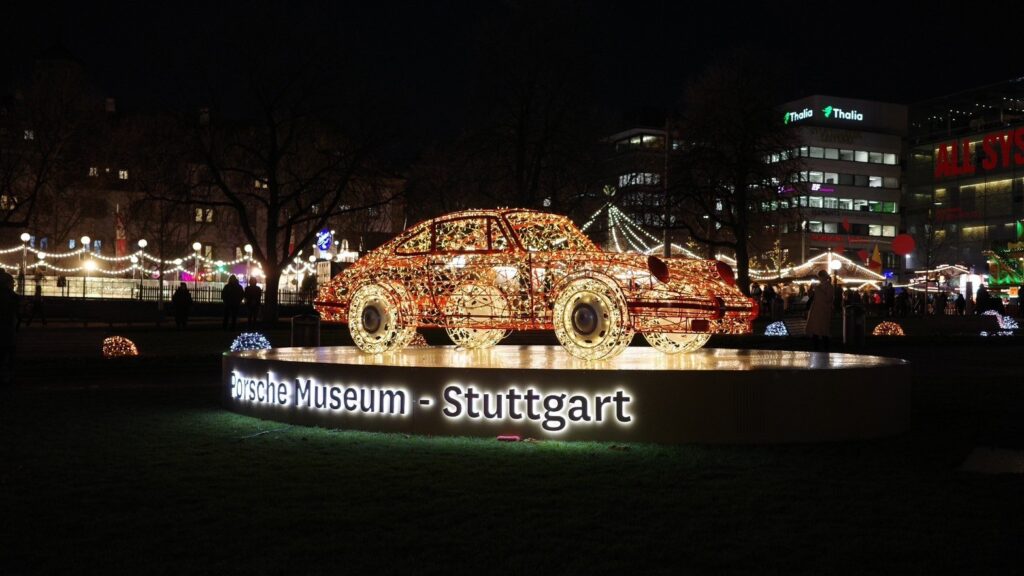 シュトゥットガルトが故郷でもあるメルセデス・ベンツ、ポルシェのイルミネーションもありました。