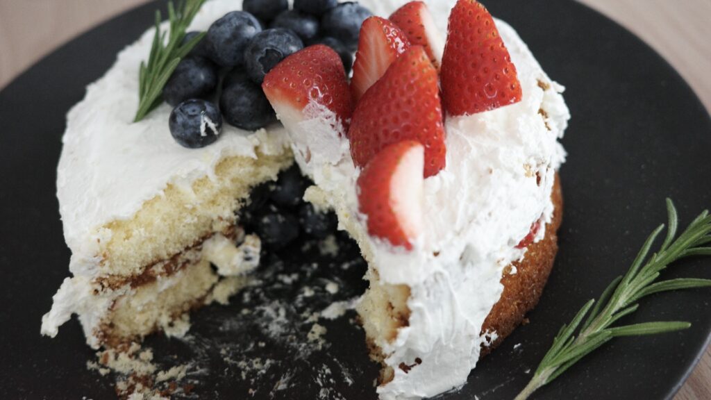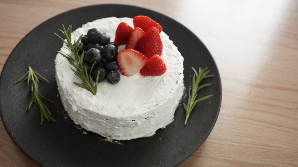 ジェンダーリビールケーキで中身に濃いめの色のフルーツを使う場合は、黒以外のお皿がおすすめです!私は黒のお皿に中身ブルーベリーだったのですが、少し分かりづらくなってしまいました。